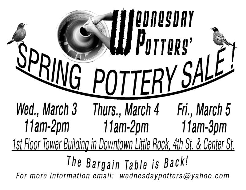 The Wednesday Potters are a diverse (some might say motley) group of people who participate in the pottery classes at the Arkansas Art Center's Museum School on Wednesdays and alumni. Our previous sales have raised money that we donated